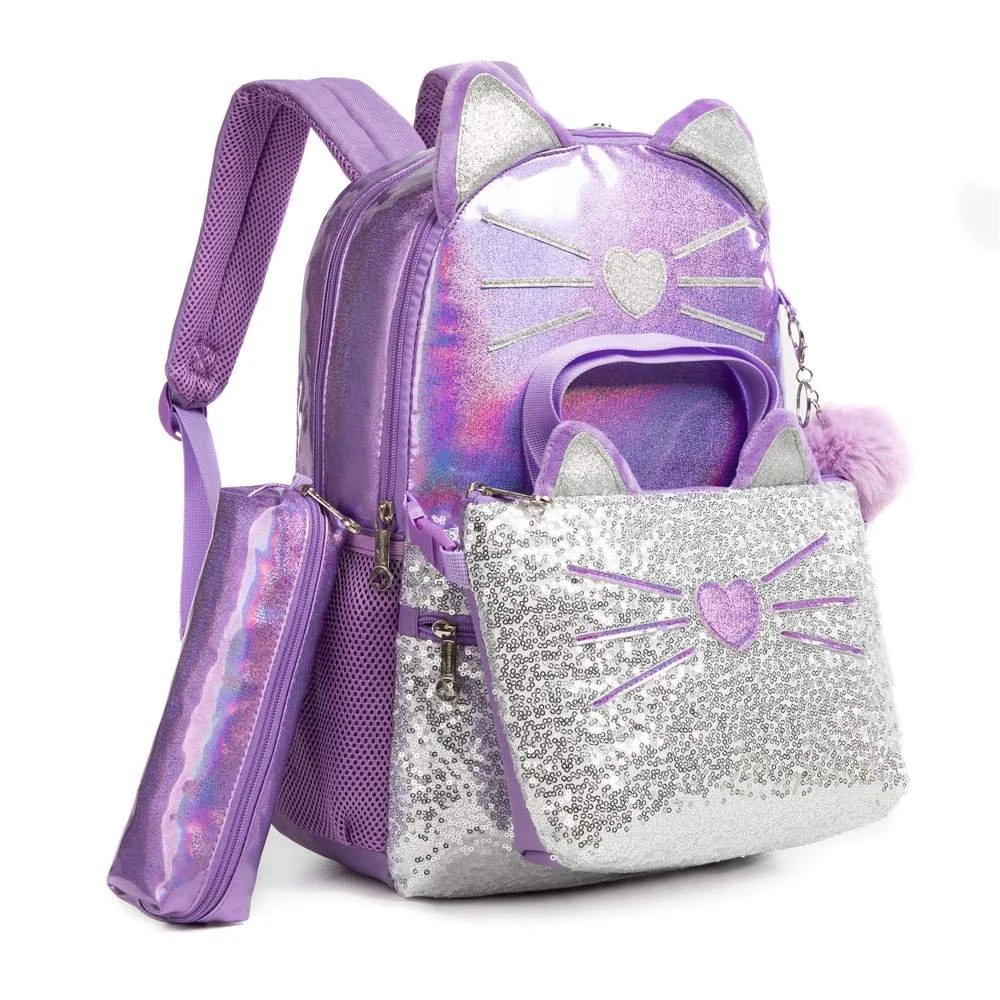 Morral Gato Morado Set 3 pzs, Lonchera y Cartuchera 40cm - 116706
